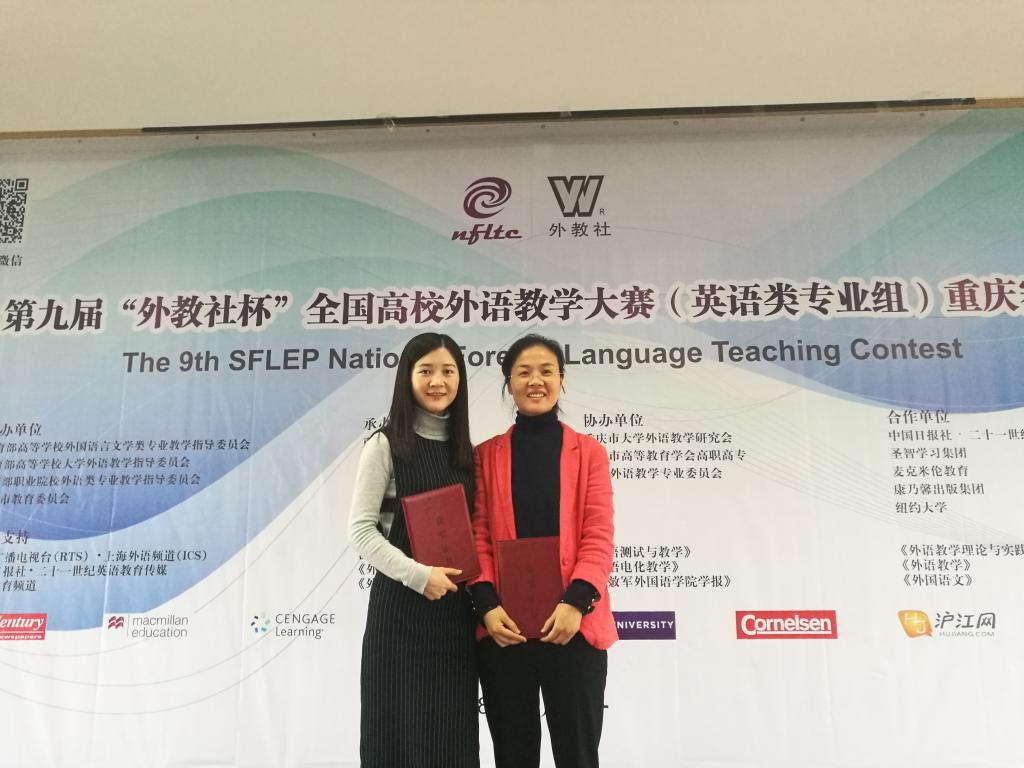 由教育部高等学校外国语言文学类专业教学指导委员会、教育部高等学校大学外语教学指导委员会、教育部职业院校外语类专业教学指导委员会和重庆市教育委员会主办,重庆市外文学会、上海外语教育出版社和西南大学共同承办的第九届“外教社杯”全国高校外语教学大赛(英语类专业组)重庆赛区复赛与决赛于10月13-14日在西南大学举行。我校外语学院张冉和张琳玲两位老师代表学校参加比赛,并分别获得商务英语专业组一等奖和英语专业组二等奖。