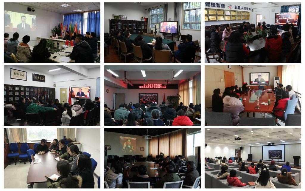 我校师生热切关注、认真学习庆祝改革开放40周年大会会议精神与习近平总书记重要讲话精神,12月17日,我校召开党委书记工作会议,研究部署收看庆祝改革开放40周年大会及学习贯彻工作;18日上午,我校在南岸校区、兰花湖片区、江北校区开放一批报告厅、会议室以便师生集中收看。全体校领导、党委常委、中层干部、师生收看了庆祝改革开放40周年大会实况。大家聆听了习近平总书记发表的重要讲话后,纷纷谈感受和体会,表示要更加紧密地团结在党中央周围,高举中国特色社会主义伟大旗帜,不忘初心,牢记使命,在新时代继续把改革开放推向前进,为实现“两个一百年”奋斗目标、实现中华民族伟大复兴的中国梦不懈奋斗。