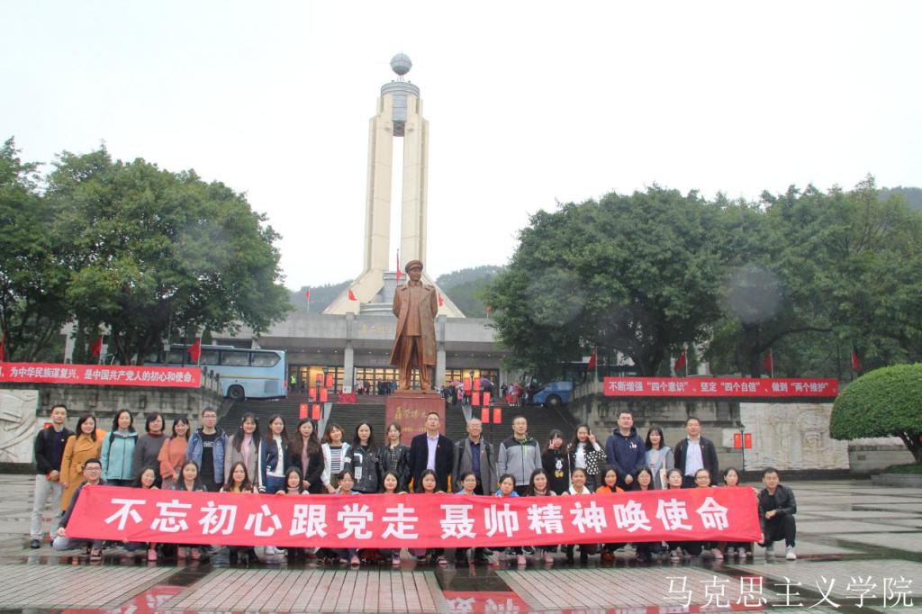 为深入贯彻落实习近平总书记关于“发扬光荣传统、传承红色基因”的重要指示精神,充分利用好本地红色资源开展对大学生的思想政治教育。10月25日,马克思主义学院带领2019级研究生、《马克思主义与当代》课程2019级博士生及《习近平新时代中国特色社会主义思想》选修课学生代表赴聂荣臻元帅陈列馆和陈独秀旧居开展“不忘初心跟党走、聂帅精神唤使命”系列教育文化活动,并与聂荣臻元帅陈列馆共建思想政治教育实践基地。