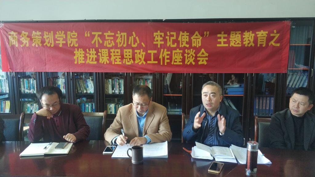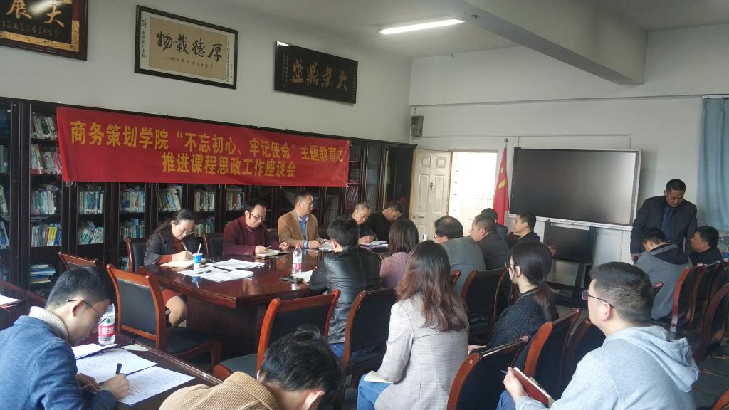 11月7日中午,商务策划学院在明德楼4020召开了“不忘初心、牢记使命”主题教育之推进课程思政建设工作座谈会,学院班子成员、系主任、督导专家以及2019年全体新进教师参加了本次座谈会。座谈会由学院骆东奇院长主持。