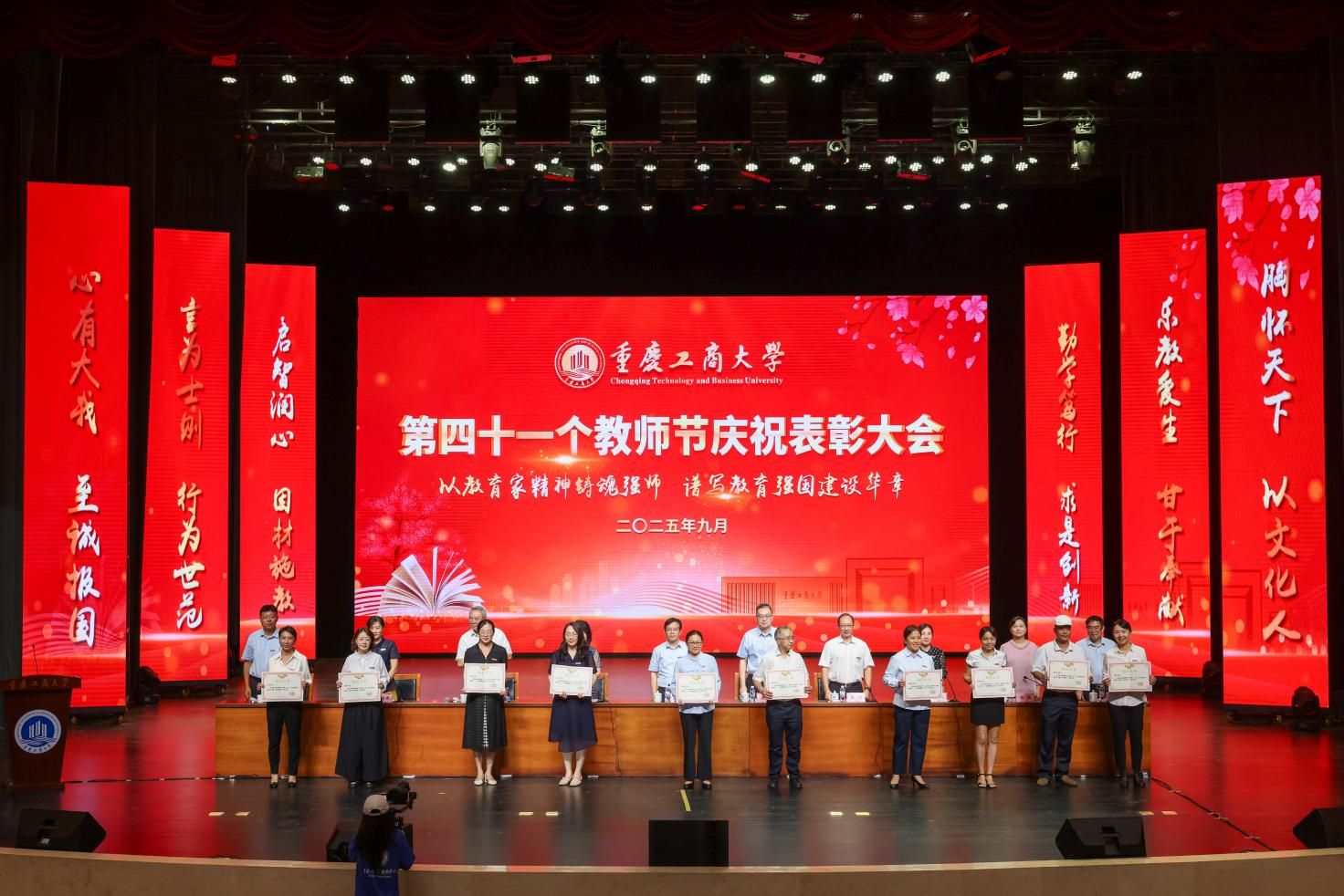 大会为第四批重庆市学术技术带头人及后备人选、2025年巴渝学者计划人选颁发了证书;表彰了第三批师德先进个人,2024-2025学年优秀教师、优秀教育工作者,第五届重庆市高校教师教学创新大赛、第四届川渝青年教师风采大赛、太阳集团tyc122cc第六届教师教学奖获奖人员,2024-2025学年优秀辅导员、2023-2025学年标兵辅导员,并为满30年教龄的教师和从事学校工作满30年的教职工颁发纪念证书。