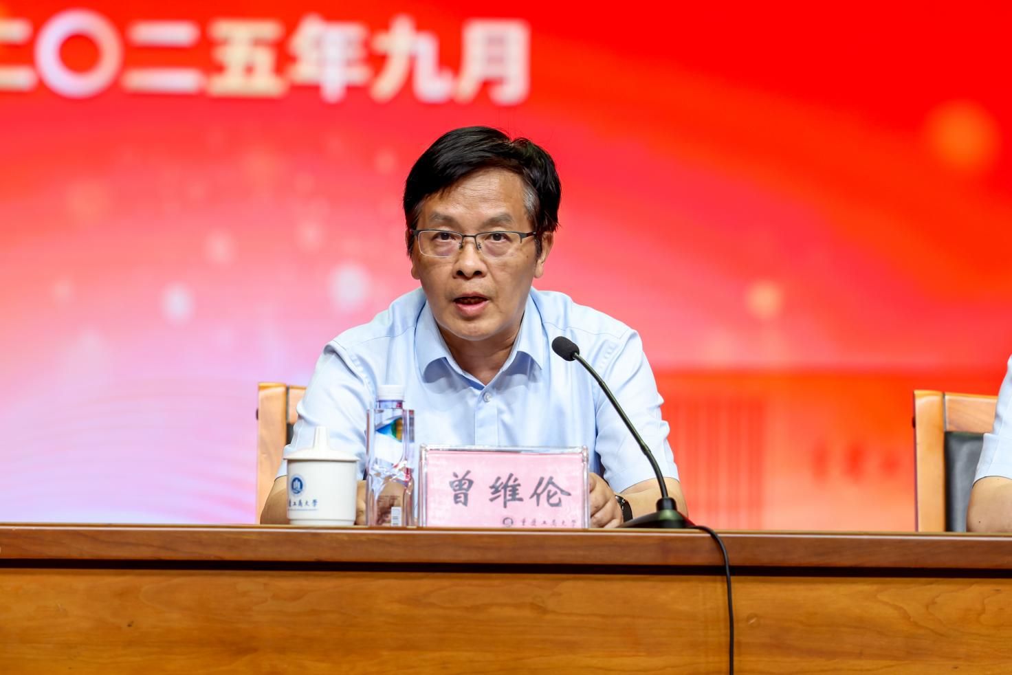 曾维伦号召,全体教职工要深刻把握教育家精神的丰富内涵和实践要求,将其融入血脉、铸入灵魂、化为行动,以“躬耕教坛、强国有我”的志向和抱负,潜心教书育人,勇攀学术高峰,努力成长为党和人民可以信任和依靠的“大先生”。