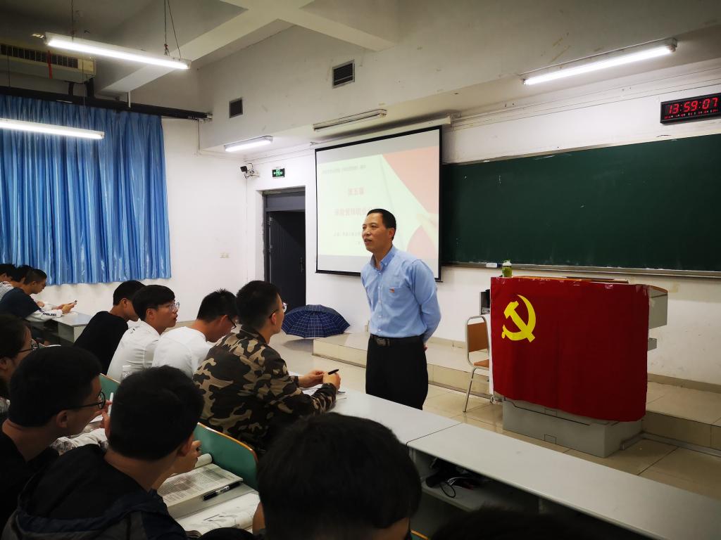4月19日下午,我校财金学院在南岸校区博智楼07122开展了第三次党员示范课,在党旗的映衬下,全院教师集体观摩了党员教师樊国昌教授讲授的《保险营销学》课。在饱含激情,深入浅出,风趣幽默的课程讲授中,樊教授把思政教育内容融入专业教学内容,从思想上教学生要善于从生活入手,让理论结合实际,将知识落到实处,让大学生深刻领悟到专业知识技能与社会主义核心价值观——诚信的紧密融合。