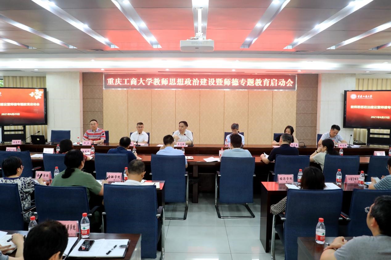 李志雄从为什么重视这项工作、如何做好师德建设和怎么开展专题教育三方面进行了讲话。他表示,加强师德师风建设是学校教师队伍建设的首要任务,是落实教育部和重庆市教委的具体要求,更是我校建设高水平师资队伍的战略需求。各二级单位要结合党史学习教育,将师德师风建设作为学校教师队伍发展的战略性任务。要认真学习习近平总书记关于师德师风建设的重要论述,认真学习“三个牢固树立”“四有”好老师、“四个引路人”“四个相统一”等重要论述。他强调,学校各二级单位要认真贯彻落实《太阳集团tyc122cc师德专题教育工作方案》规定的八项重点任务,按照选树先进真榜样、警示教育切实际、相关工作重结合的原则来推进师德专题教育工作,达到梳理总结成机制、师德失范被清零、名师楷模常涌现的效果,推动我校教育教学水平高质量发展。