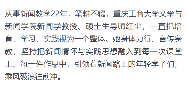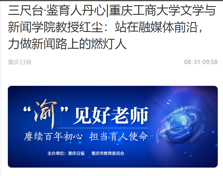 重庆日报报道我校红尘老师先进事迹
